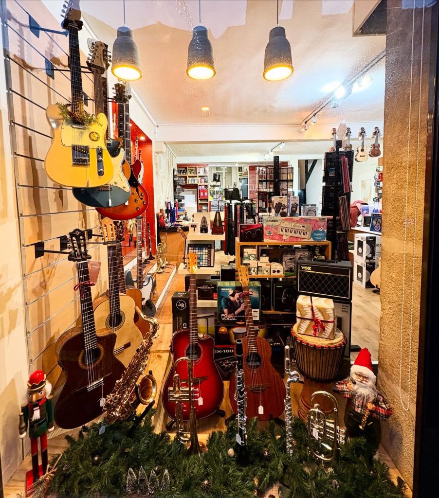 À l'entrée du magasin vous trouverez tous nos accessoires, nos ukulélés ainsi que nos produits phares.